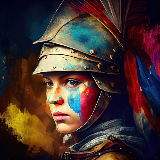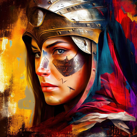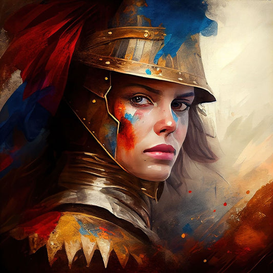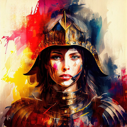 Watercolor Powerful Medieval Warrior Woman #1 White Modern Wood Framed Art Print with Double Matting by Chromatic Fusion Studio