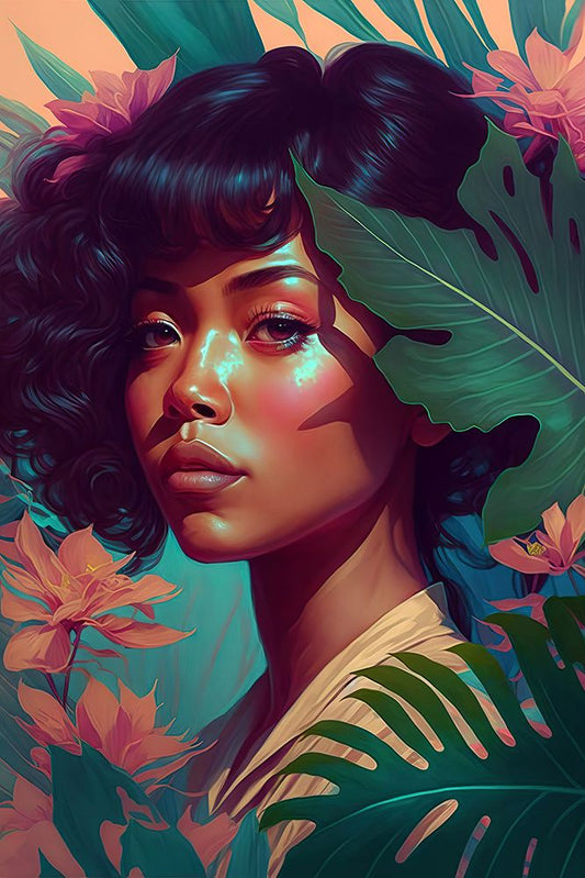 Hawaiian Beauty White Modern Wood Framed Art Print with Double Matting by Treechild