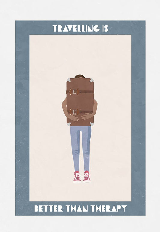 Travelling is better than therapy White Modern Wood Framed Art Print with Double Matting by Manovski, Sarah