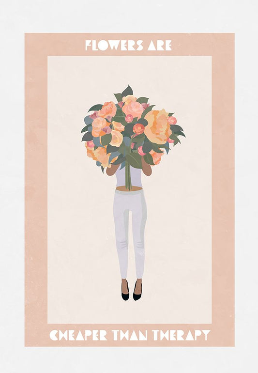 Flowers are cheaper than therapy White Modern Wood Framed Art Print with Double Matting by Manovski, Sarah