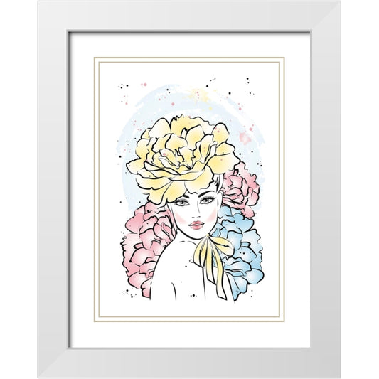 Peony Girl White Modern Wood Framed Art Print with Double Matting by Martina