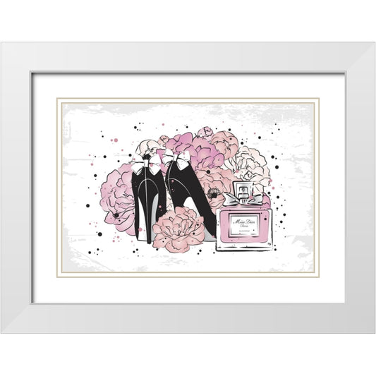 Pink Shoes White Modern Wood Framed Art Print with Double Matting by Martina