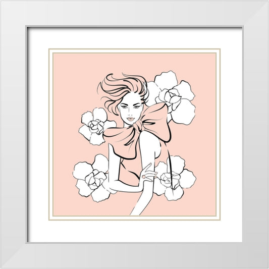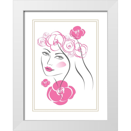 Pink Lady White Modern Wood Framed Art Print with Double Matting by Martina