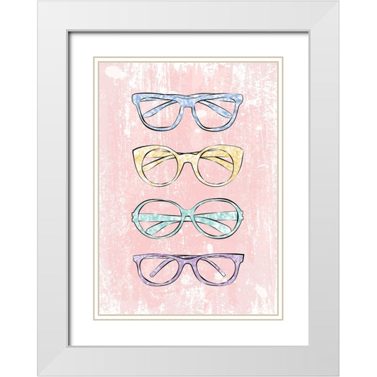 Pink Glasses White Modern Wood Framed Art Print with Double Matting by Martina