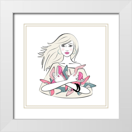 Shoe Lover White Modern Wood Framed Art Print with Double Matting by Martina