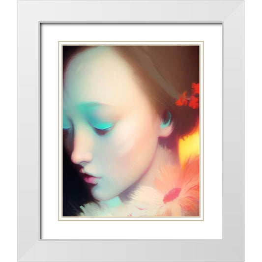Girl with Daisies White Modern Wood Framed Art Print with Double Matting by Day, Ruth