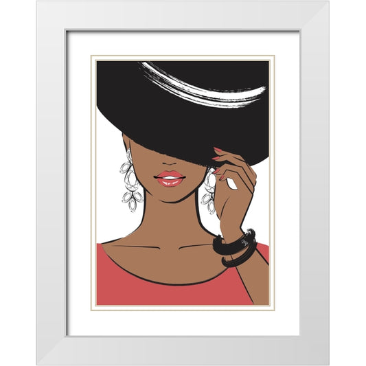 Hat Girl Dark White Modern Wood Framed Art Print with Double Matting by Martina
