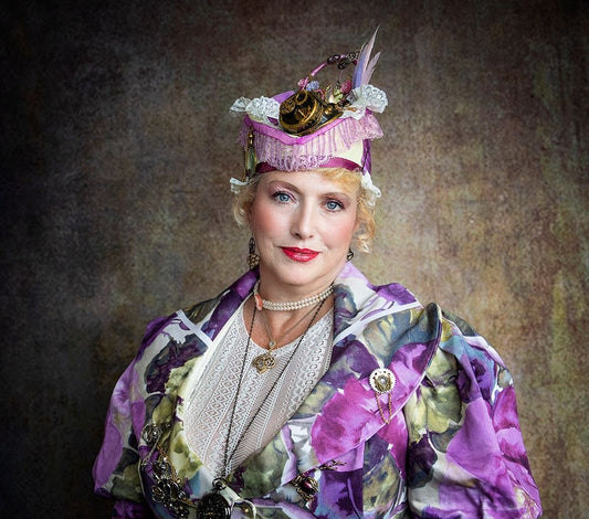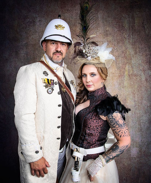 Steampunk Wars - The Diplomat With Wife White Modern Wood Framed Art Print with Double Matting by Springgay, Daniel