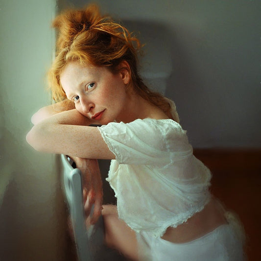 Charming Girl White Modern Wood Framed Art Print with Double Matting by Chang, Jiangping