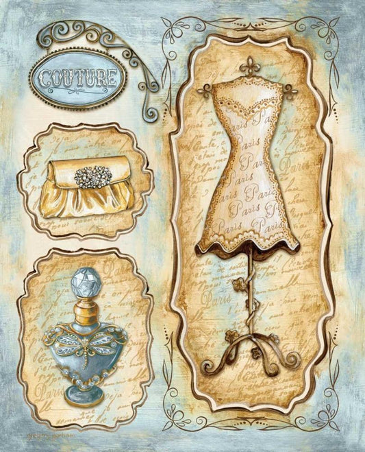Keys to Paris Couture Black Ornate Wood Framed Art Print with Double Matting by Gorham, Gregory