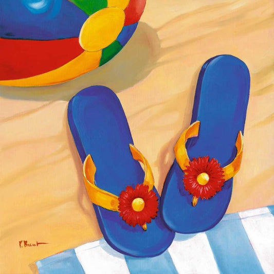 Blue Flip Flops Black Ornate Wood Framed Art Print with Double Matting by Brent, Paul