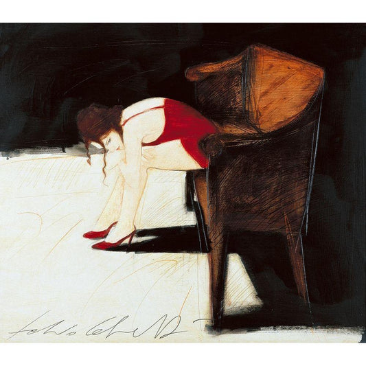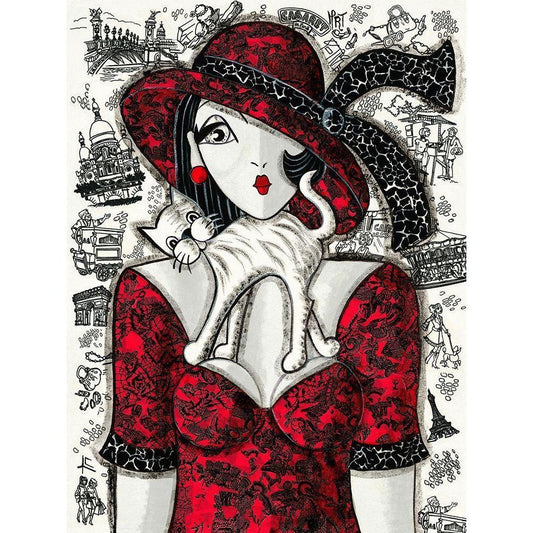 Chat sur robe rouge Black Modern Wood Framed Art Print with Double Matting by MIROTA