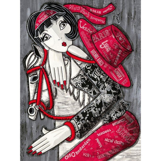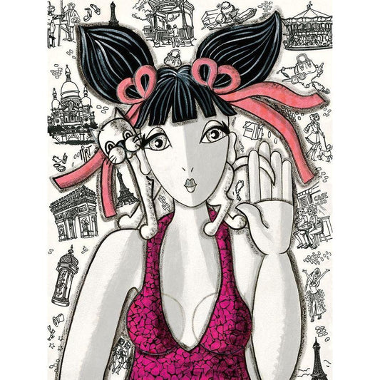 Soiree deguisee Black Modern Wood Framed Art Print with Double Matting by MIROTA