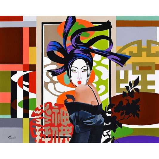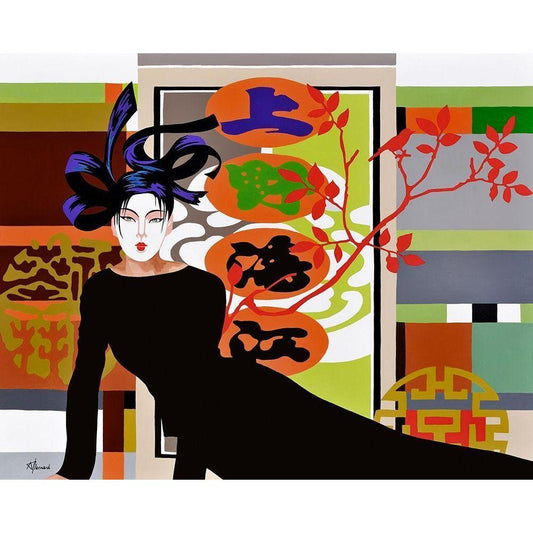 Asian Dress I Black Modern Wood Framed Art Print with Double Matting by Thiry, Diana