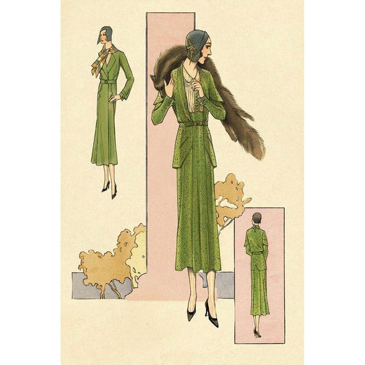 Emerald Suit with Stole Black Modern Wood Framed Art Print with Double Matting by Vintage Fashion
