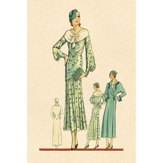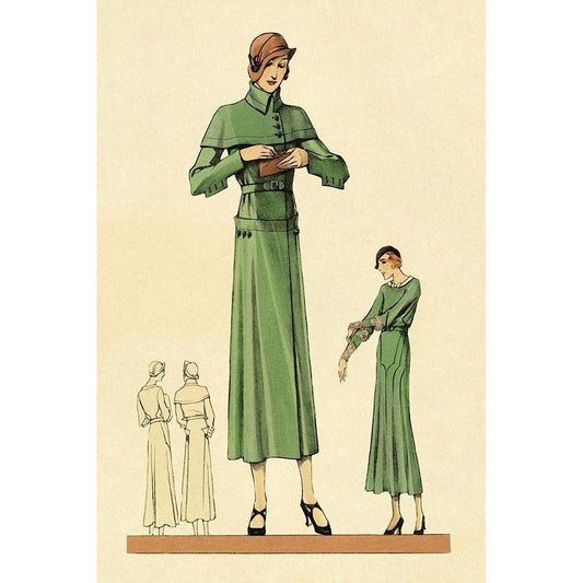 Green Dress and Overcoat Black Modern Wood Framed Art Print with Double Matting by Vintage Fashion