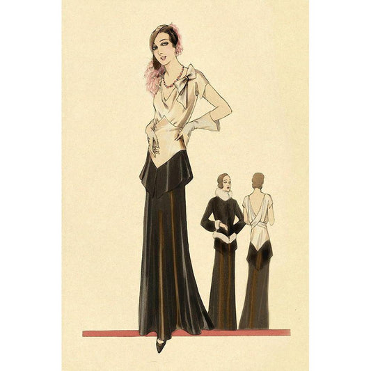 Eveningwear in Black and White Black Modern Wood Framed Art Print with Double Matting by Vintage Fashion