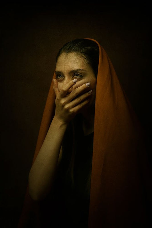 Persian Girl White Modern Wood Framed Art Print with Double Matting by Hasheminasab, Moein