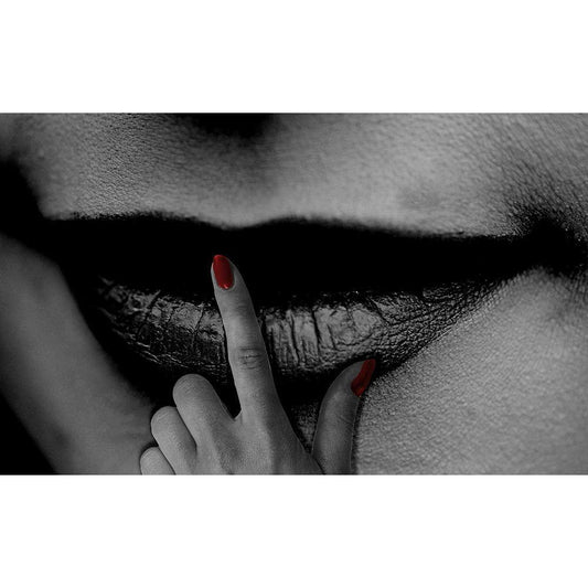 Red Lips Black Modern Wood Framed Art Print with Double Matting by Phillip, Jamie