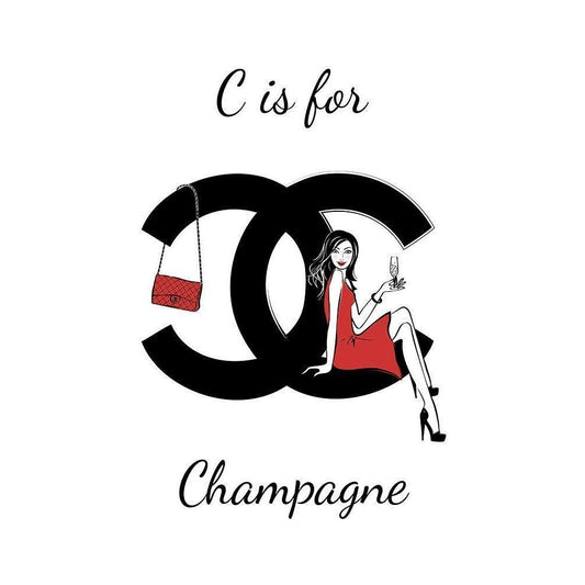C is for Champagne Black Modern Wood Framed Art Print with Double Matting by Pavlova, Martina