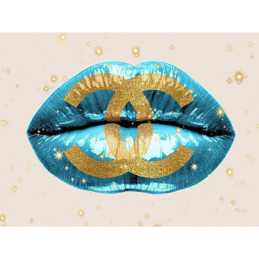 Luxury Lips Blue Black Modern Wood Framed Art Print with Double Matting by Blake, Madeline