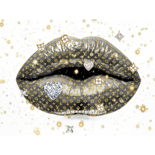 Luxury Lips Gold Black Modern Wood Framed Art Print with Double Matting by Blake, Madeline