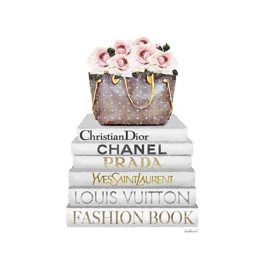 Pink Rose Book Stack Black Modern Wood Framed Art Print with Double Matting by Amanda Greenwood