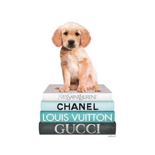 Bookstack Teal Golden Black Modern Wood Framed Art Print with Double Matting by Amanda Greenwood