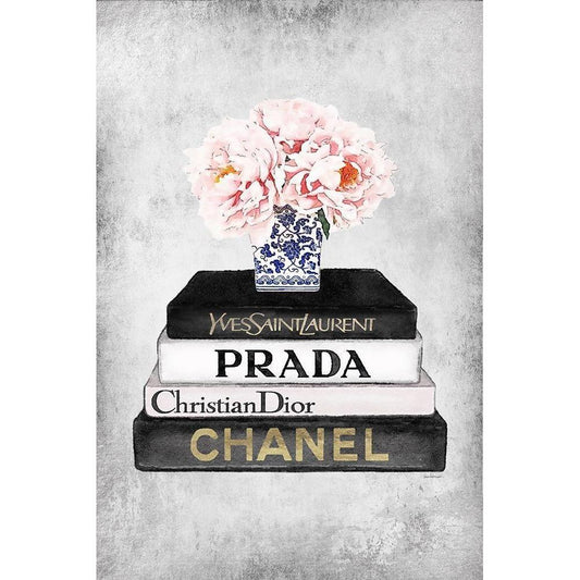 Bookstack Pink Peony Vase Black Modern Wood Framed Art Print with Double Matting by Amanda Greenwood