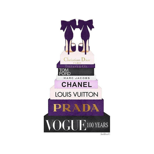 Bookstack Purple Black Modern Wood Framed Art Print with Double Matting by Amanda Greenwood
