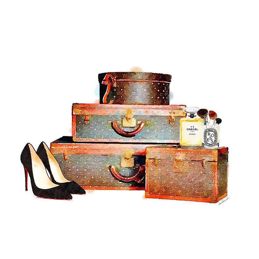 Luggage Collection Black Modern Wood Framed Art Print with Double Matting by Greenwood, Amanda