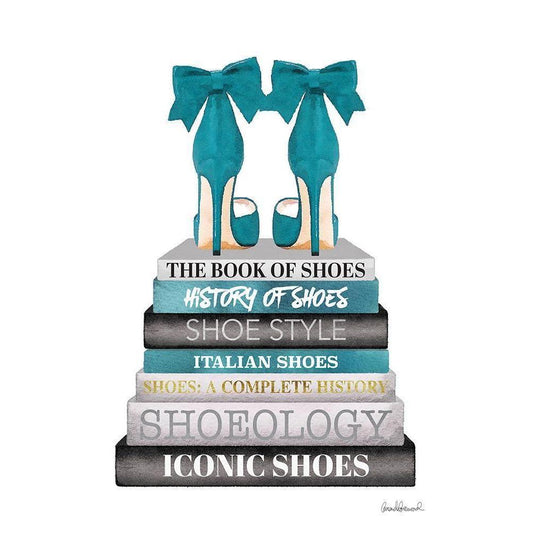 Teal Bookstack Shoe Black Modern Wood Framed Art Print with Double Matting by Greenwood, Amanda