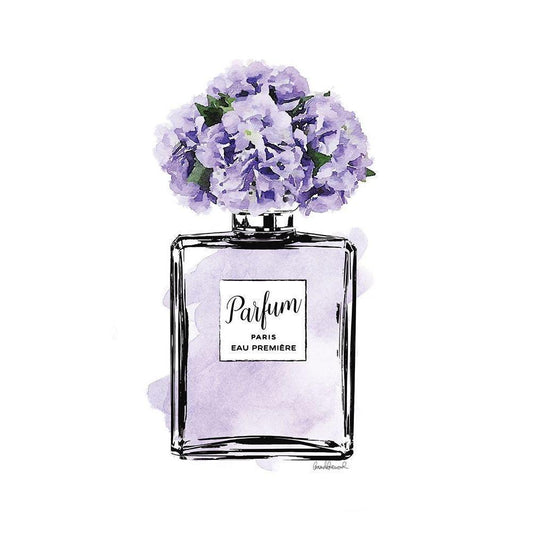 Parfume Purple with Hydrangea Black Modern Wood Framed Art Print with Double Matting by Greenwood, Amanda