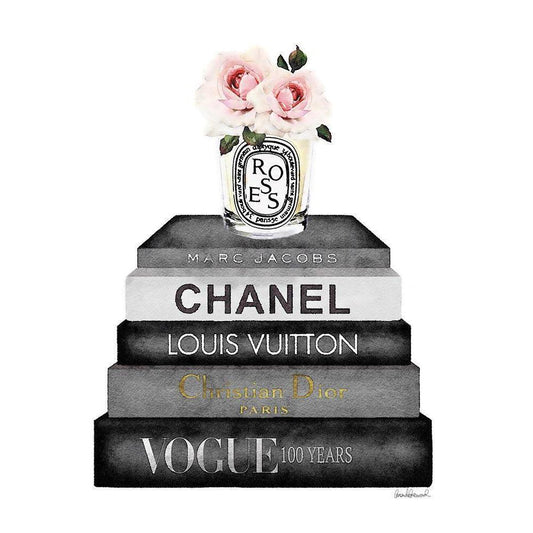 Book Stack Makeup Black Modern Wood Framed Art Print with Double Matting by Greenwood, Amanda