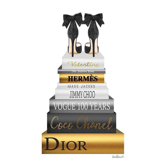 Book Stack Metallic Gold Black Modern Wood Framed Art Print with Double Matting by Greenwood, Amanda