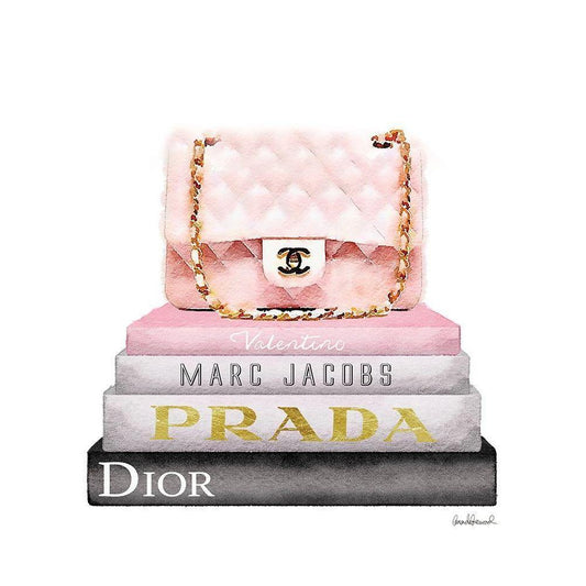Book Stack Pink Bag Black Modern Wood Framed Art Print with Double Matting by Greenwood, Amanda