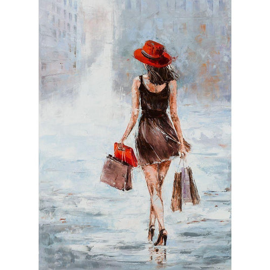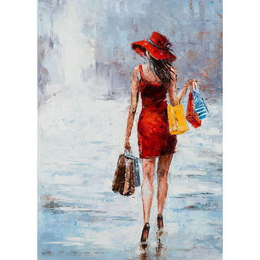 Shopping Girl in Red Black Modern Wood Framed Art Print with Double Matting by Kowalik, Jolanta