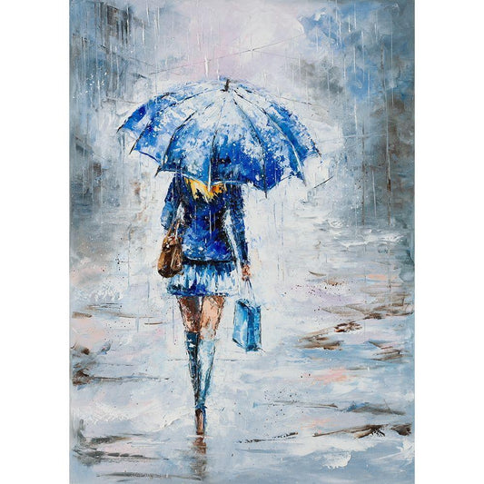 Lady in Blue with Umbrella Black Modern Wood Framed Art Print with Double Matting by Kowalik, Jolanta