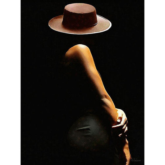Lady with Hat II Black Modern Wood Framed Art Print with Double Matting by Medeiros, Celito