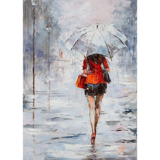 Lady in Red with Umbrella Black Modern Wood Framed Art Print with Double Matting by Kowalik, Jolanta