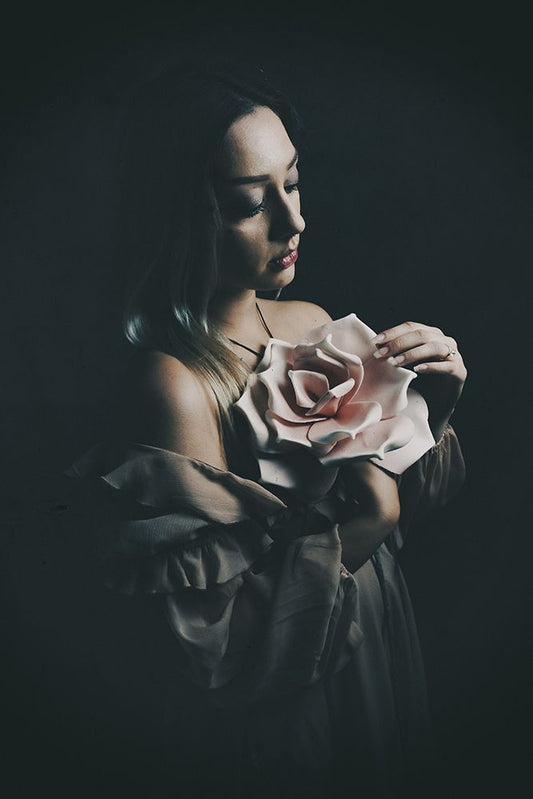 The way She blooms White Modern Wood Framed Art Print with Double Matting by Bolgov (Axe), Ruslan