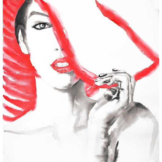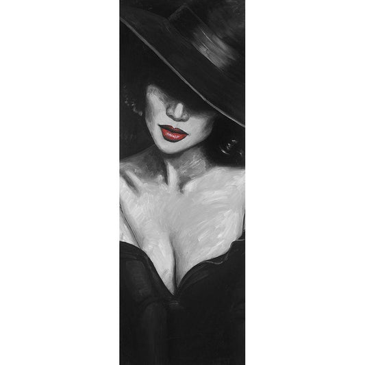 Mysterious Red Lips Lady Black Modern Wood Framed Art Print with Double Matting by Atelier B Art Studio