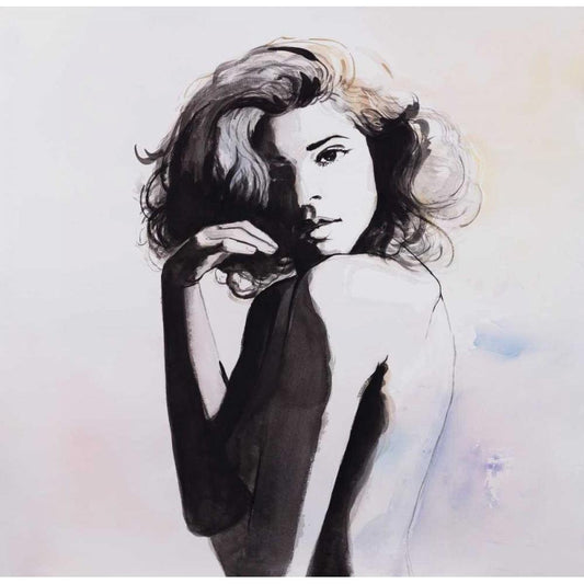 Classic Woman Black Modern Wood Framed Art Print with Double Matting by Atelier B Art Studio