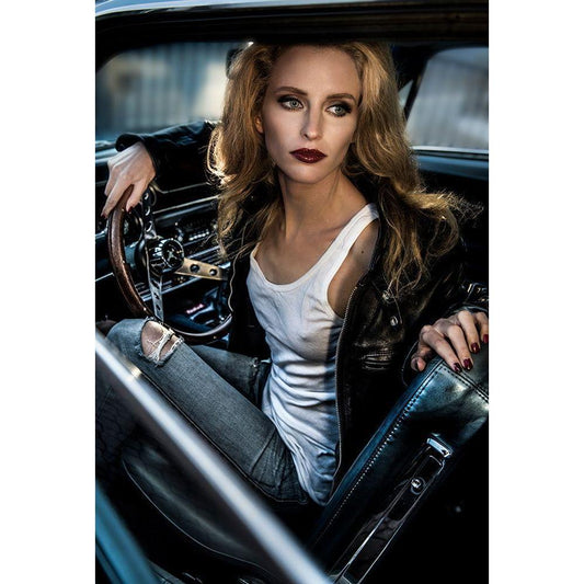 Waiting To Reverse My 69 Ford Mustang Black Modern Wood Framed Art Print with Double Matting by Peter Muller Photography