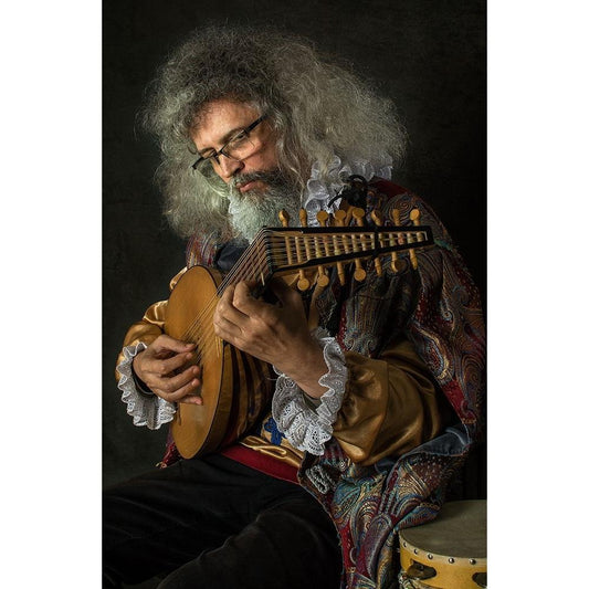 Finding Caravaggio - Singers The Lute Black Modern Wood Framed Art Print with Double Matting by Roibu, Grigore