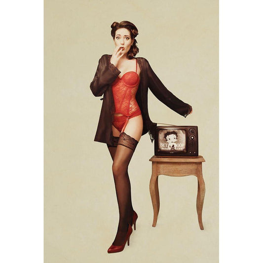 Pin Up Girl Ii Black Modern Wood Framed Art Print with Double Matting by Peeters, Bart