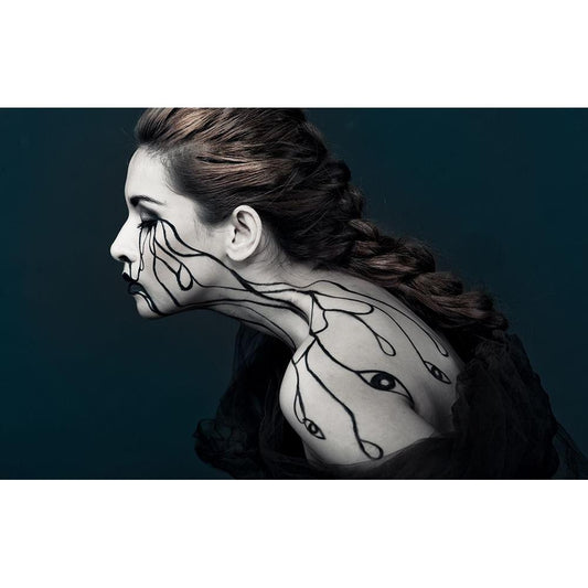 Eye To Eyes Black Modern Wood Framed Art Print with Double Matting by Yogasara, Yudhistira