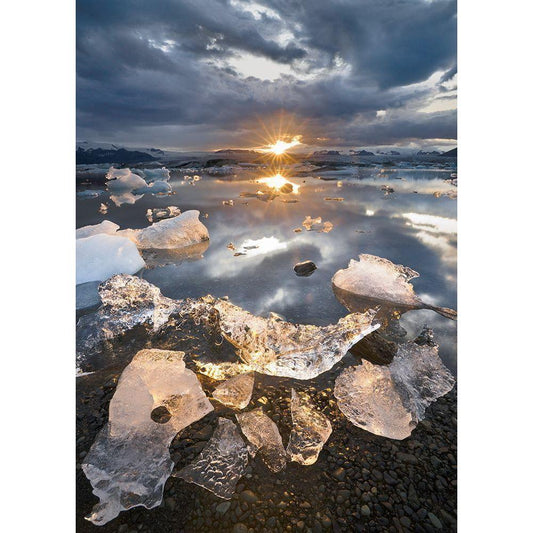 Glacial Lagoon Beach Black Modern Wood Framed Art Print with Double Matting by Baroni, Massimo