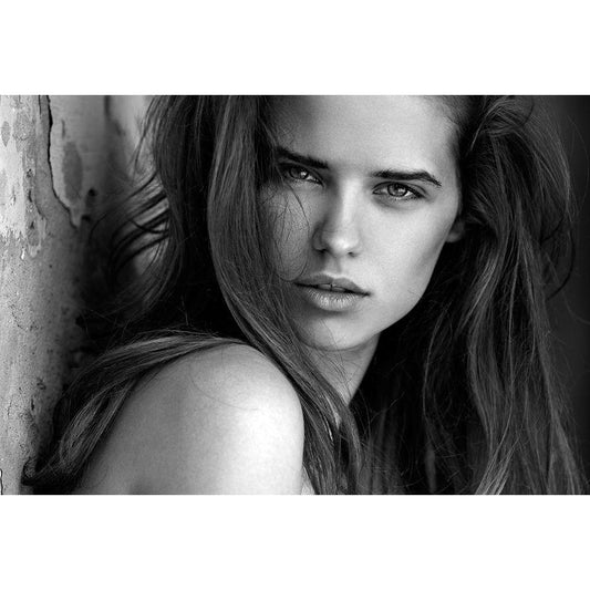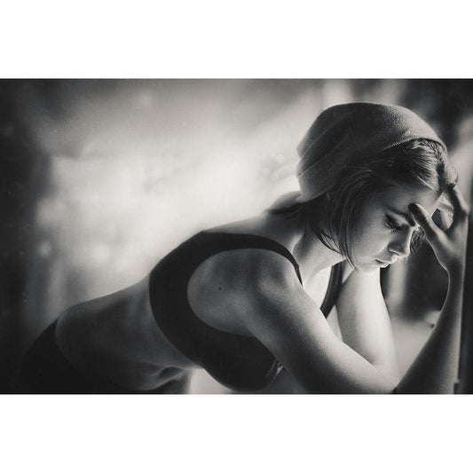 Girl In Shadow And Light 1 Black Modern Wood Framed Art Print with Double Matting by Knudsen, Henrik