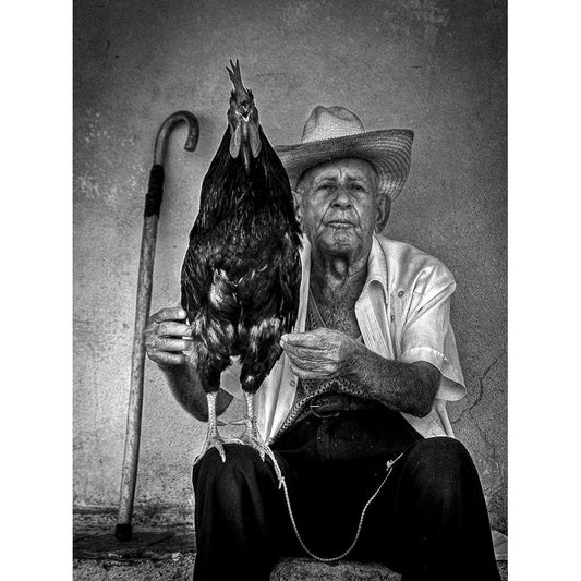 The Old Man With His Figting Cock Black Modern Wood Framed Art Print with Double Matting by Mazalrey, Alain